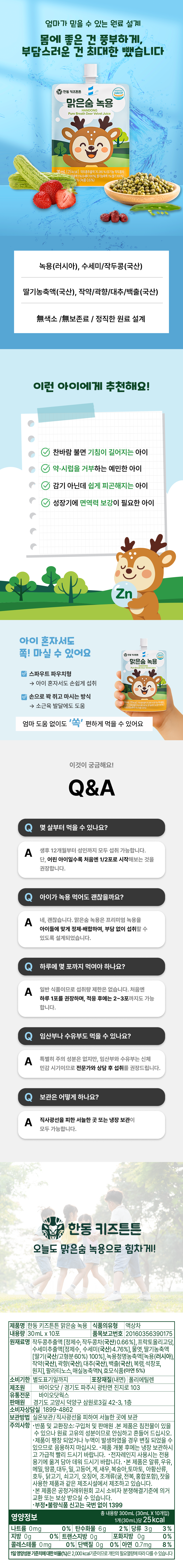 한동키즈튼튼 맑은숨녹용 녹용, 작두콩, 수세미, 아연 함유 (30ml x 10)